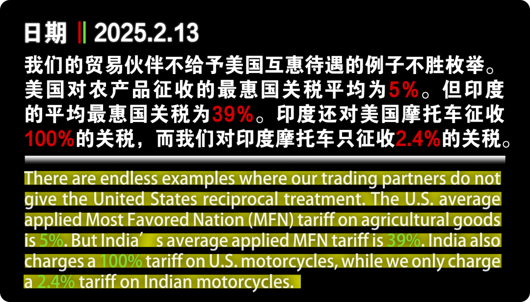 當地時間2月13日,特朗普宣布了最新的關稅決定:在未來幾周或幾個月內對其他國家加征“對等關稅”。這意味著,美國的貿易伙伴,全部面臨著新的關稅威脅。