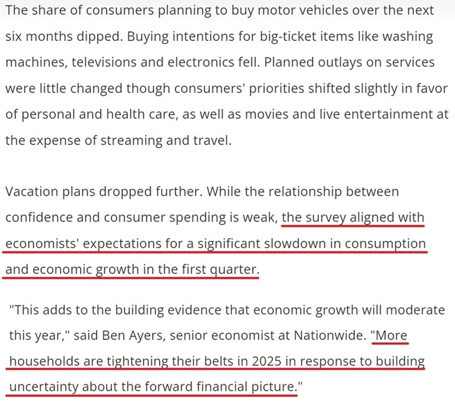 報(bào)告警告,如果美國消費(fèi)者信心繼續(xù)下滑,可能會(huì)顯著影響他們的消費(fèi)模式,在未來幾個(gè)月減緩經(jīng)濟(jì)增長。