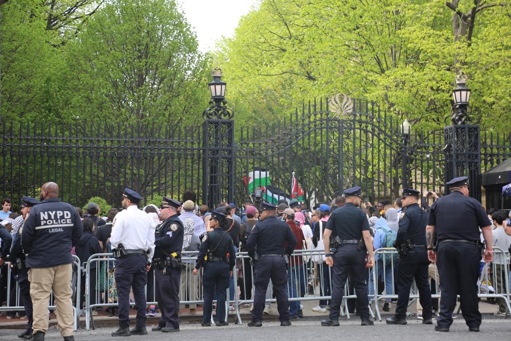 2024年4月30日,警察在美國紐約哥倫比亞大學(xué)外警戒。新華社記者 劉亞南 攝