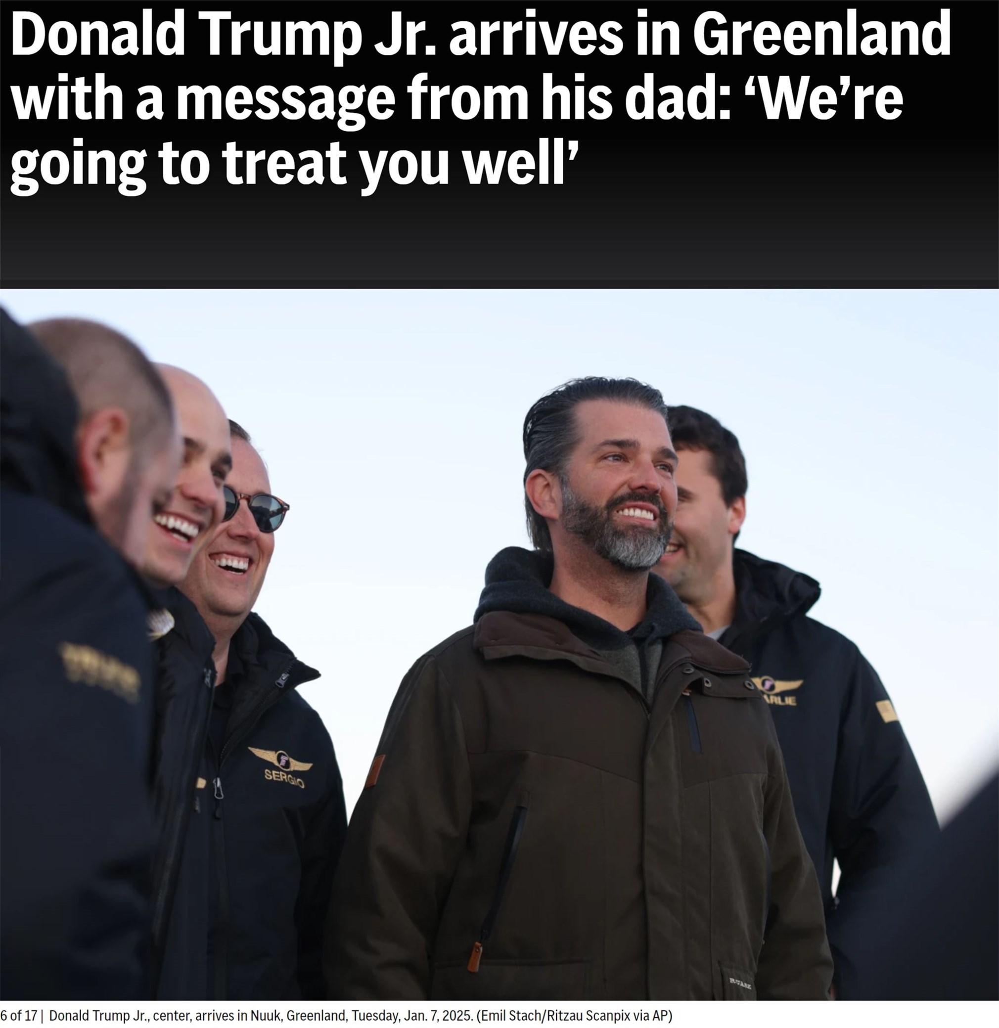 為了讓“奪島”計劃早日成真,除了美國代表團不請自來的訪問計劃,特朗普長子小唐納德·特朗普早在年初就已經借私人旅游的名頭去島上“打前站”。