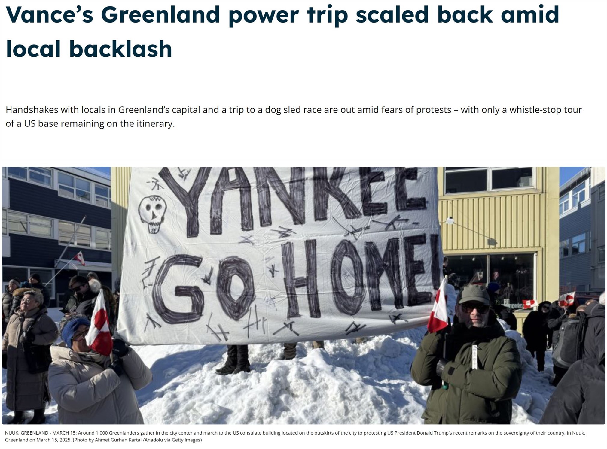 事實上,萬斯一行此次對格陵蘭島的訪問相當不受歡迎。