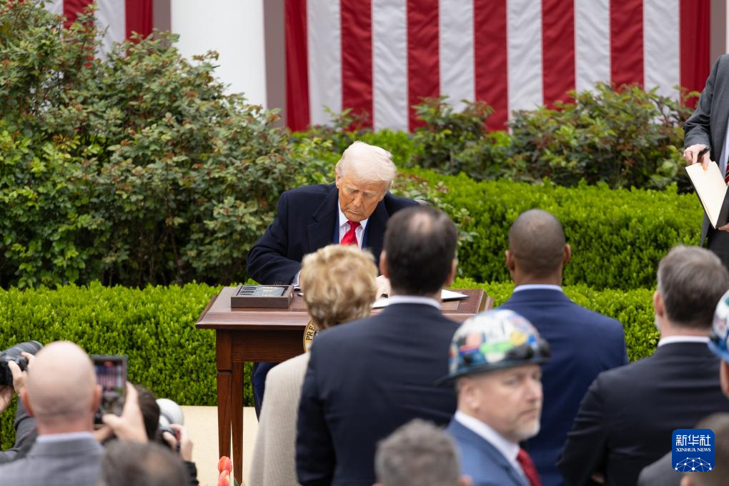 4月2日,美國(guó)總統(tǒng)特朗普在華盛頓白宮簽署關(guān)于所謂“對(duì)等關(guān)稅”的行政令。新華社記者 胡友松 攝