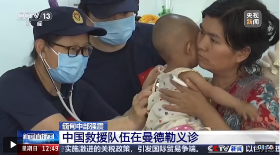 總臺央視記者 唐國榮:這里是緬甸曼德勒的多金堰地區,來自中國救援隊、中國國際救援隊和中國香港救援隊的醫療隊員們,來到這里為緬甸地震中受災的人員開展各種醫療救助服務。
