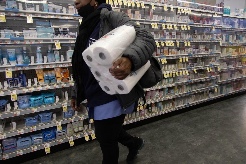 3月28日,顧客在美國紐約市一家藥房購買衛生紙。新華社發(郭克攝)