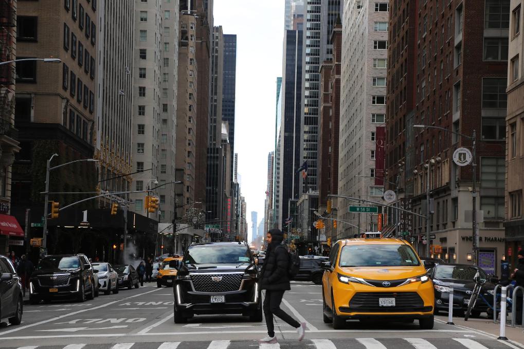 1月5日,在美國紐約曼哈頓,行人通過擁堵減緩區內的一個人行橫道。新華社記者劉亞南攝