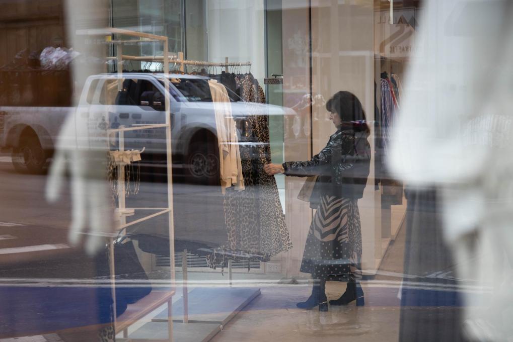 3月28日,顧客在美國紐約市一家服裝店選購服裝。新華社發(郭克攝)