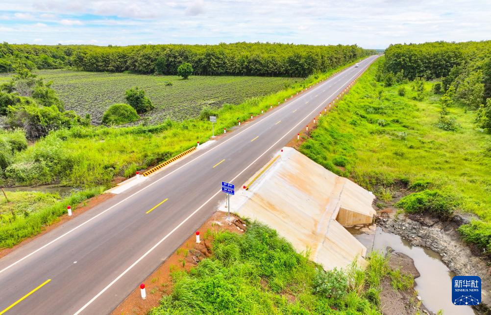 這是2024年7月14日在柬埔寨特本克蒙省拍攝的71C號國家公路(無人機照片)。新華社發(尼多拉攝)