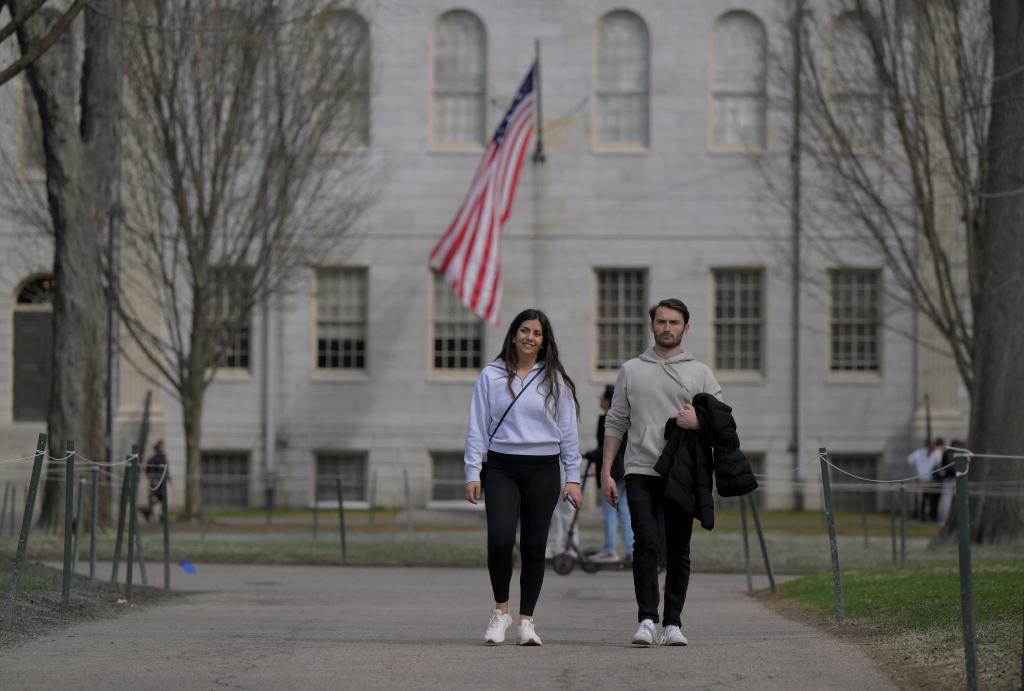 4月15日,人們漫步在美國馬薩諸塞州劍橋市的哈佛大學校園內。新華社/路透