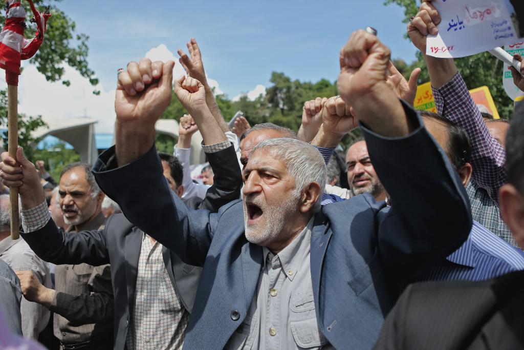 2018年5月11日,在伊朗首都德黑蘭,民眾抗議美國退出伊核協議。新華社發(哈拉比薩茲攝)