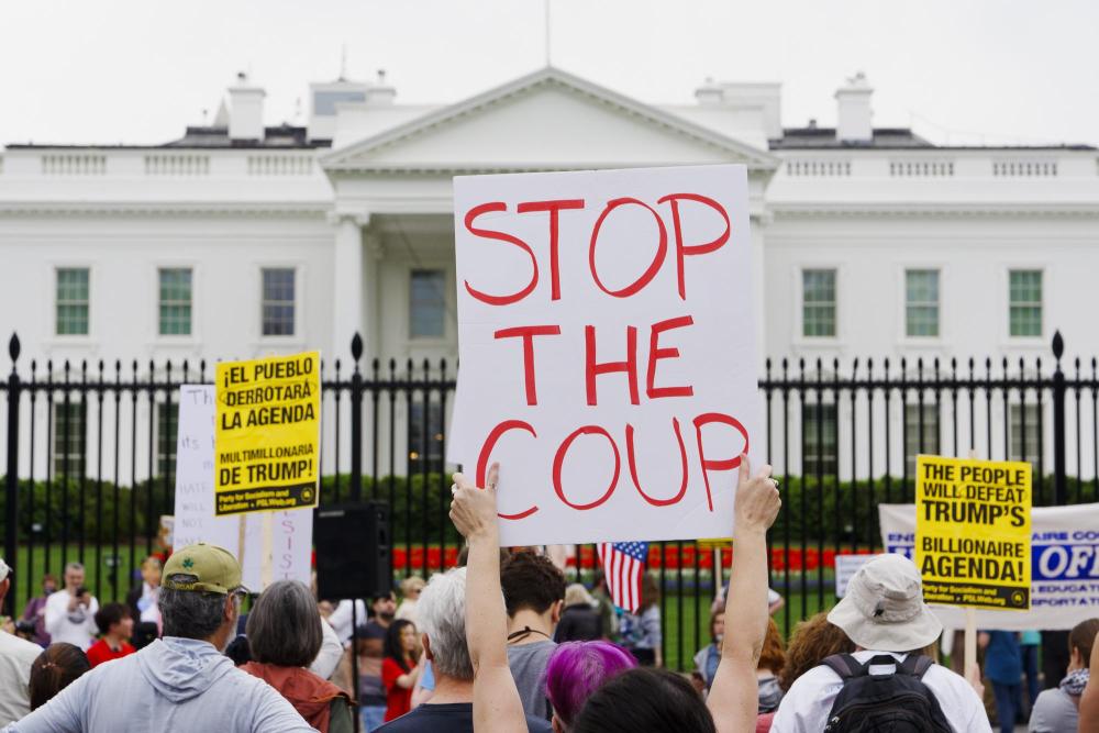 4月19日,人們在美國首都華盛頓白宮門前參加抗議活動。美國多地19日舉行抗議活動,首都華盛頓、紐約、舊金山、波士頓等城市的民眾走上街頭,抗議現(xiàn)政府大規(guī)模裁員、加征關(guān)稅、驅(qū)逐移民等政策。新華社發(fā)(亞倫攝)