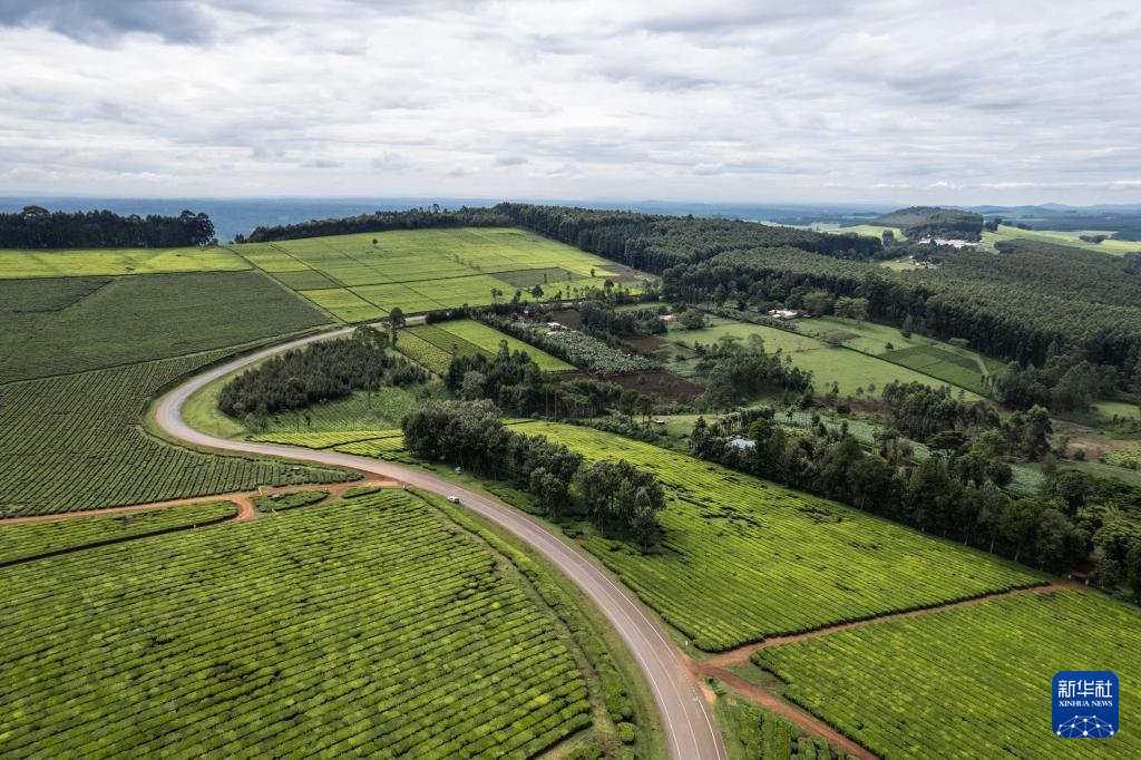 在4月雨水的滋潤下,肯尼亞西部連綿起伏的茶園煥發著勃勃生機。在肯尼亞核心茶產區,中企承建的C22公路不遠處,多家茶葉加工廠正在加緊生產。