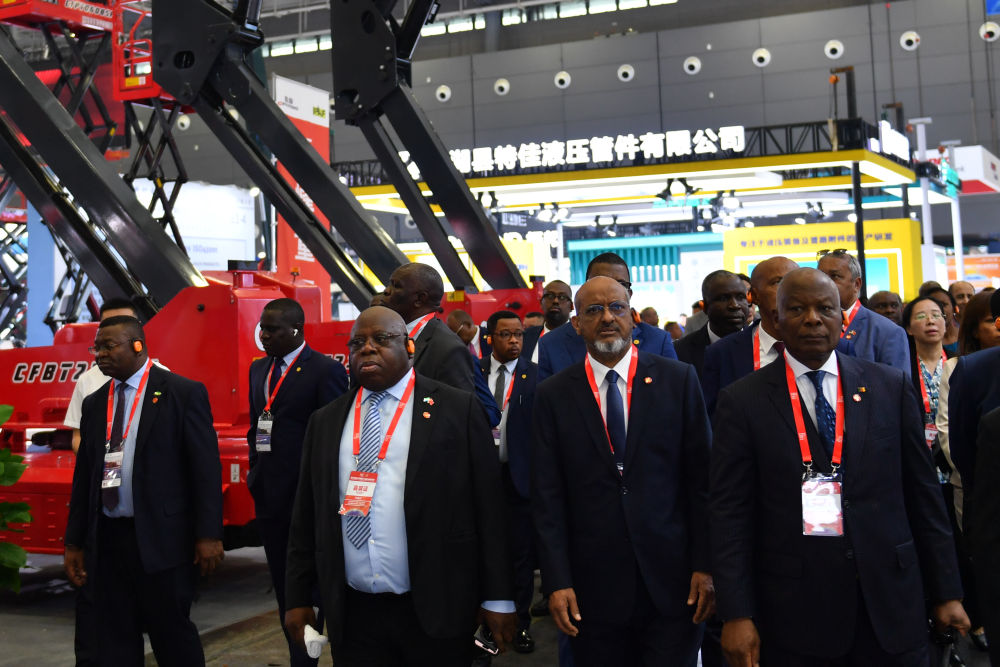 5月15日,非洲駐華使節代表團參觀第四屆長沙國際工程機械展覽會。新華社記者 陳振海 攝