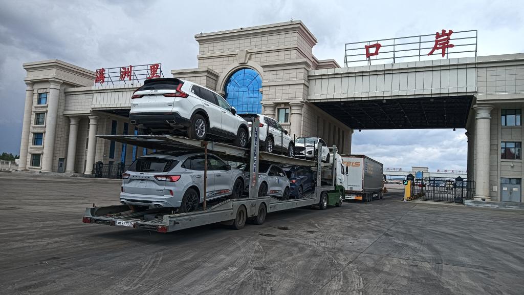 2024年7月,一批二手車通過滿洲里公路口岸出口。新華社發