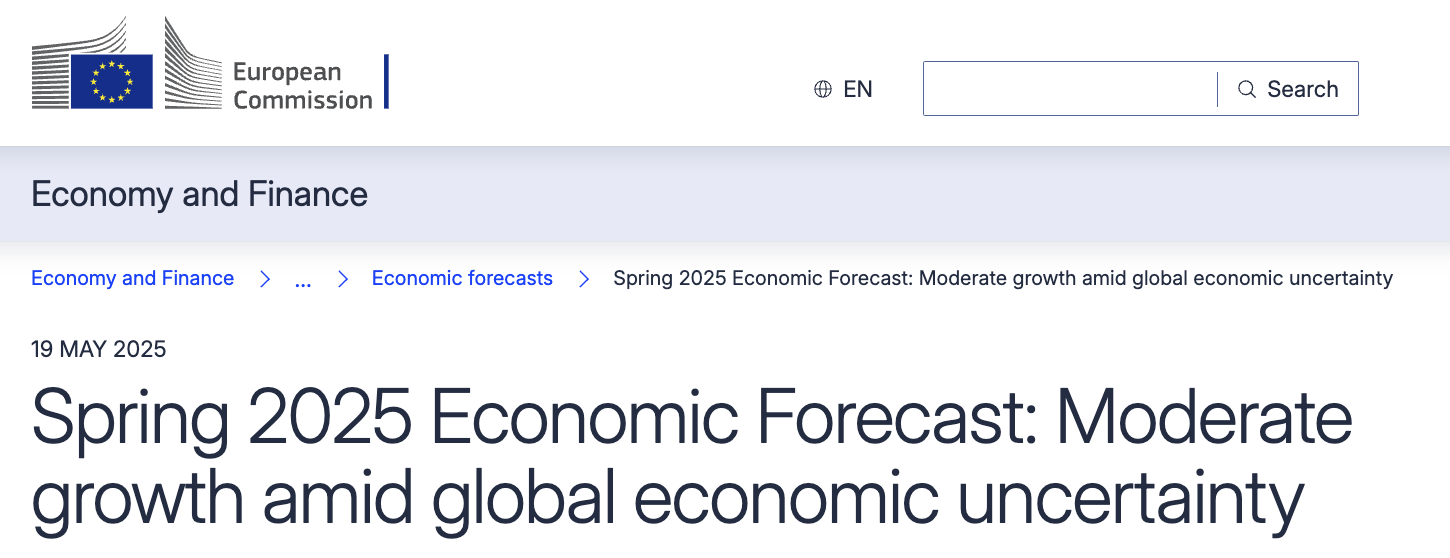 歐盟委員會日前發布2025年春季經濟展望報告顯示,受全球貿易前景趨弱和美國貿易政策不確定性增加影響,該機構大幅下調歐洲經濟增長預期。