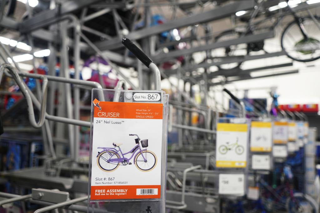 這是5月21日在美國加利福尼亞州舊金山灣區圣萊安德羅一家沃爾瑪超市拍攝的自行車貨架。新華社記者 吳曉凌 攝