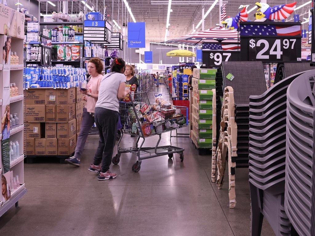 5月20日,顧客在美國加利福尼亞州洛杉磯縣一家沃爾瑪商店內采購商品。新華社發(邱晨攝)