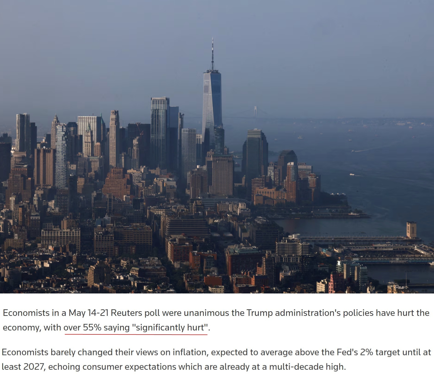 美國政府4月10日宣布暫緩對部分貿易伙伴征收“對等關稅”90天的期限即將過半,路透社近日公布的面向經濟學家的最新民調顯示,受訪經濟學家一致認為,白宮的相關政策對美國經濟造成了負面影響,其中超過55%認為“造成了重大傷害”。