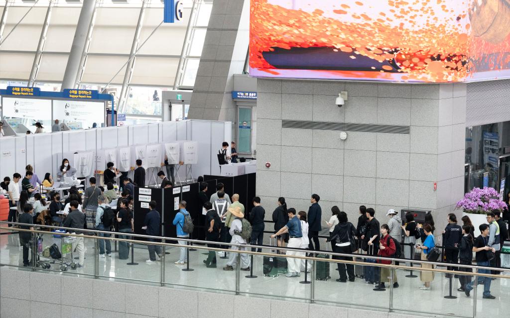 5月29日,選民在韓國仁川機場的投票站排隊等待投票。新華社發(fā)(全休相攝)