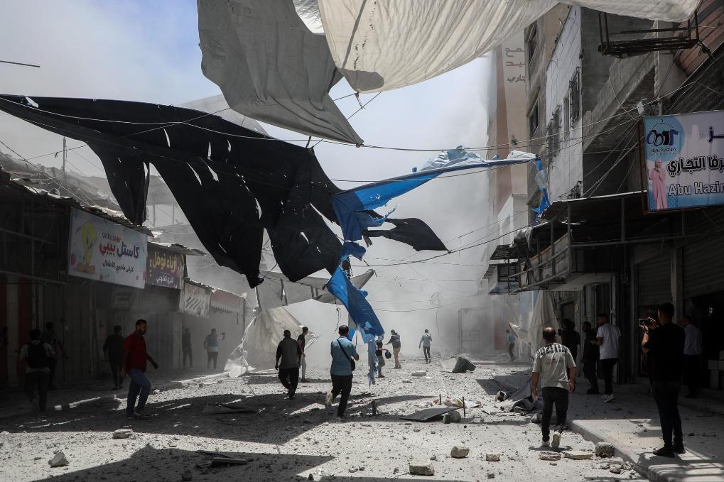 5月31日,人們在加沙城查看遭以軍襲擊后的廢墟。新華社發(里澤克·阿卜杜勒賈瓦德攝)