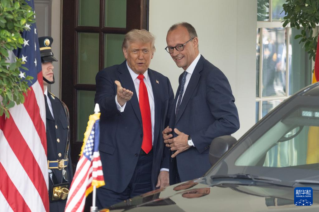 6月5日,美國總統特朗普在華盛頓白宮迎接到訪的德國總理默茨。新華社記者 胡友松 攝