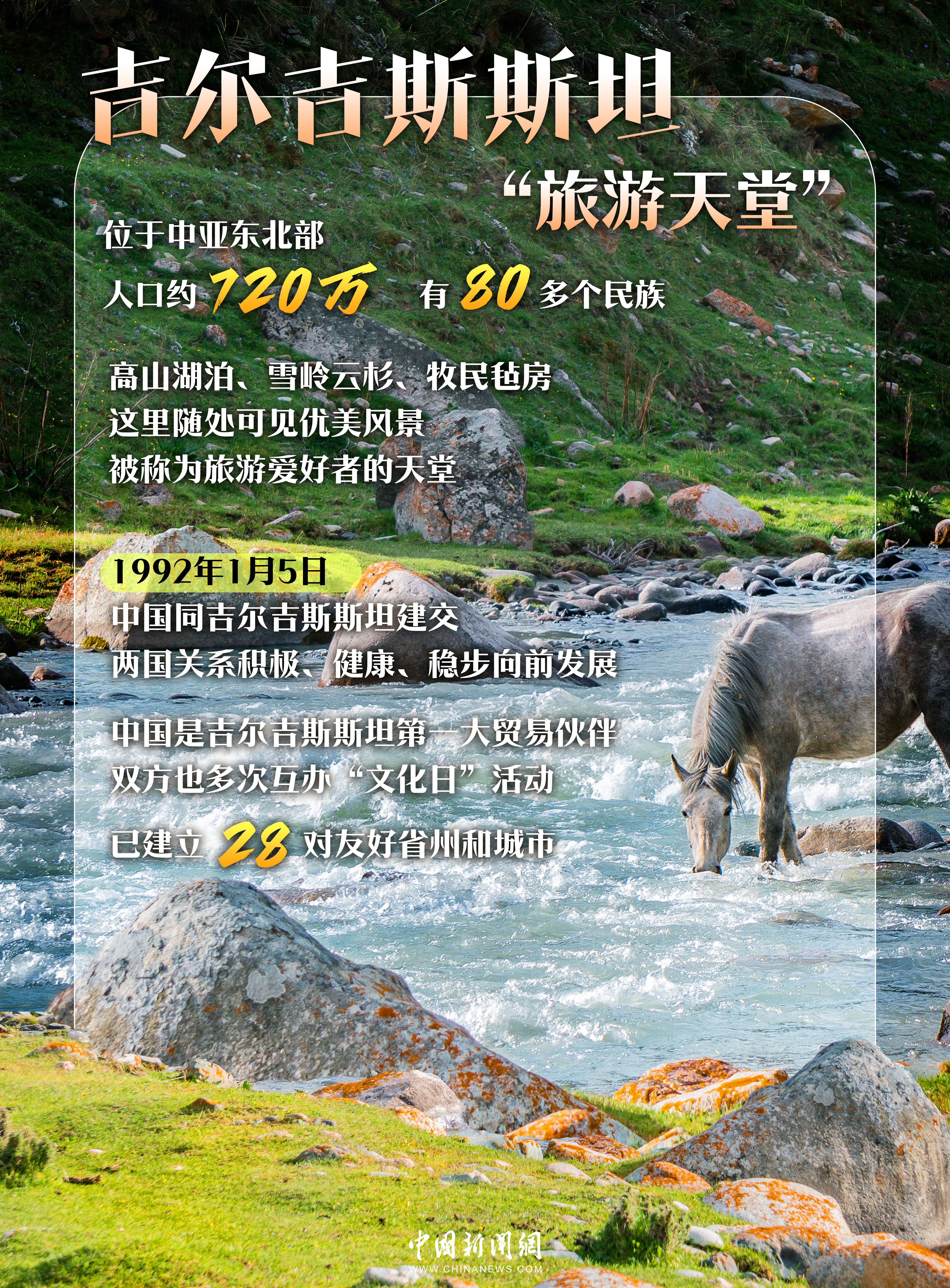 吉爾吉斯斯坦同樣自然環境優美,被譽為“中亞小瑞士”,每年吸引著全球上百萬游客。