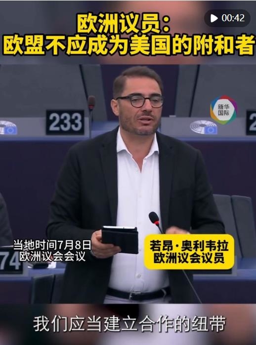 在8日的歐洲議會會議上,議員若昂·奧利韋拉在辯論中表示,歐盟不應成為美國對華的對抗和緊張升級政策的“附和者”。他說,建立合作紐帶,實現互利共贏才應是歐洲處理對華關系的基本態度。