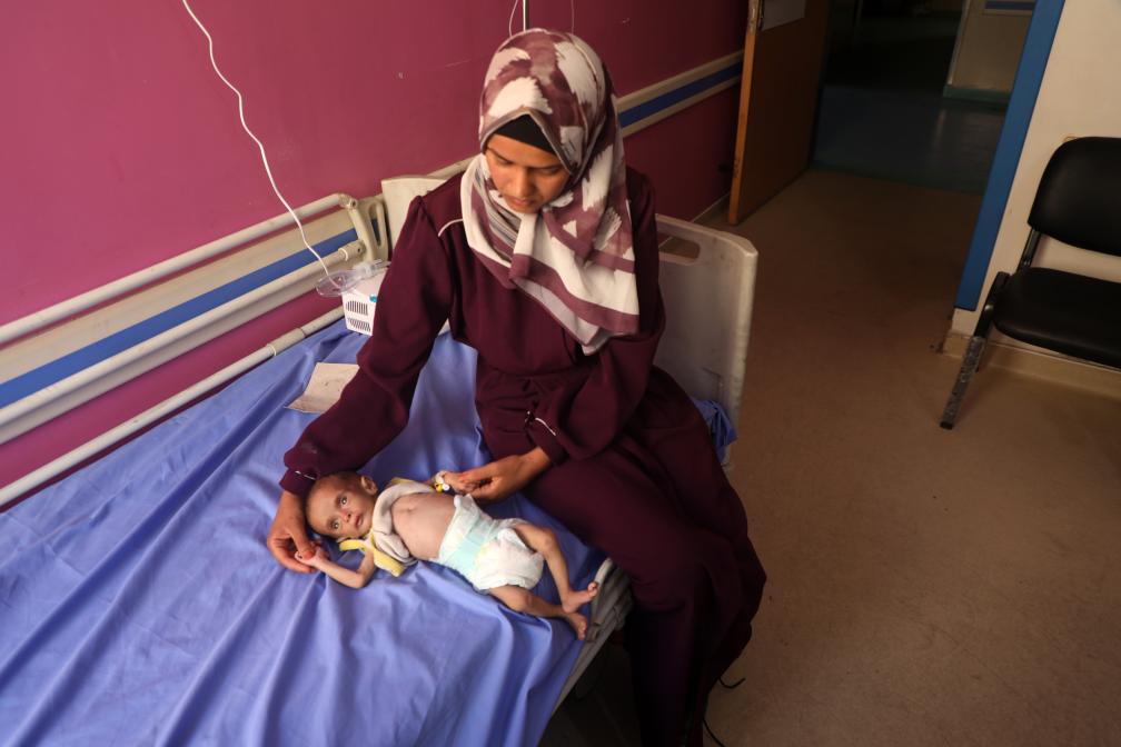 7月23日,在加沙城一所醫院里,一名女子照顧營養不良的兒童。新華社發(里澤克·阿卜杜勒賈瓦德攝)