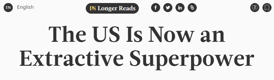 近日,世界報業辛迪加網站刊登一篇文章,標題是《美國已經成為一個榨取型的超級大國》。