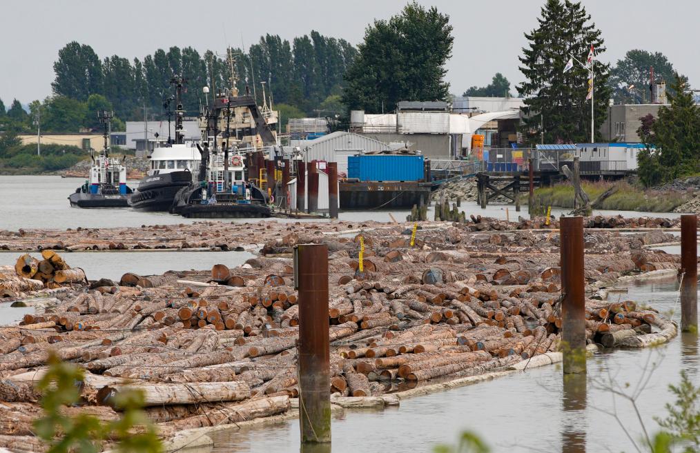 這是8月5日在加拿大里士滿拍攝的弗雷澤河上的木材。加拿大總理卡尼5日宣布,受美國加征關稅等因素影響,政府將提供12億加元支持加拿大軟木材行業發展。新華社發(梁森攝)