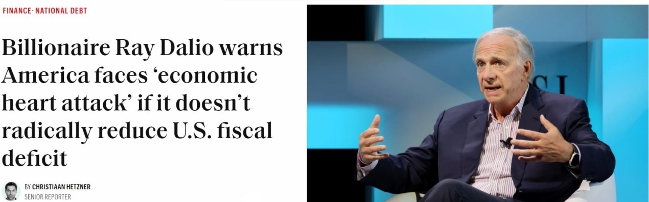 美國橋水基金創始人達利歐此前更是警告,如果不能有效控制財政赤字和債務規模,美國經濟遲早會“心臟病發作”。