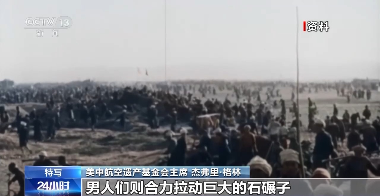 美中航空遺產(chǎn)基金會主席 杰弗里·格林:婦女們背上背著孩子,坐在地上把大石塊敲成小石子;孩子們再把小石子撿到指定地點(diǎn);男人們則合力拉動巨大的石碾子,有時候要100個人才能拉動一臺10噸重的石碾子,就為了把跑道壓平整。無論是寒冬還是酷暑,婦女們敲碎的每一塊石頭,都是在為機(jī)場出力,為飛機(jī)起降創(chuàng)造條件,讓美國飛行員能順利升空抗擊日軍。這背后是一種信念:他們所做的一切都在為勝利搭建基礎(chǔ)。