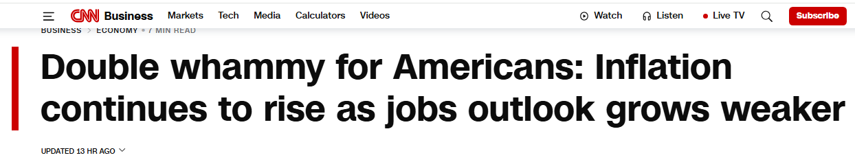 美國經濟正面臨 “通脹高企” 與 “就業降溫” 的雙重打擊。