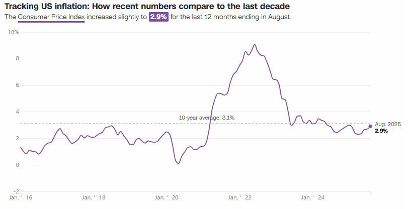 美國勞工統計局最新數據顯示,2025年8月消費者價格指數(CPI)環比上漲0.4%,年通脹率攀升至2.9%,不僅創下今年1月以來的最高水平,而且增速超過7月的2.7%。