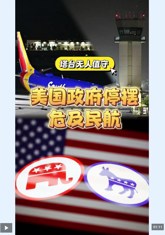 當地時間10月6日,由于美國政府“關門”持續,洛杉磯地區的好萊塢伯班克機場當晚數小時無空管人員值守。