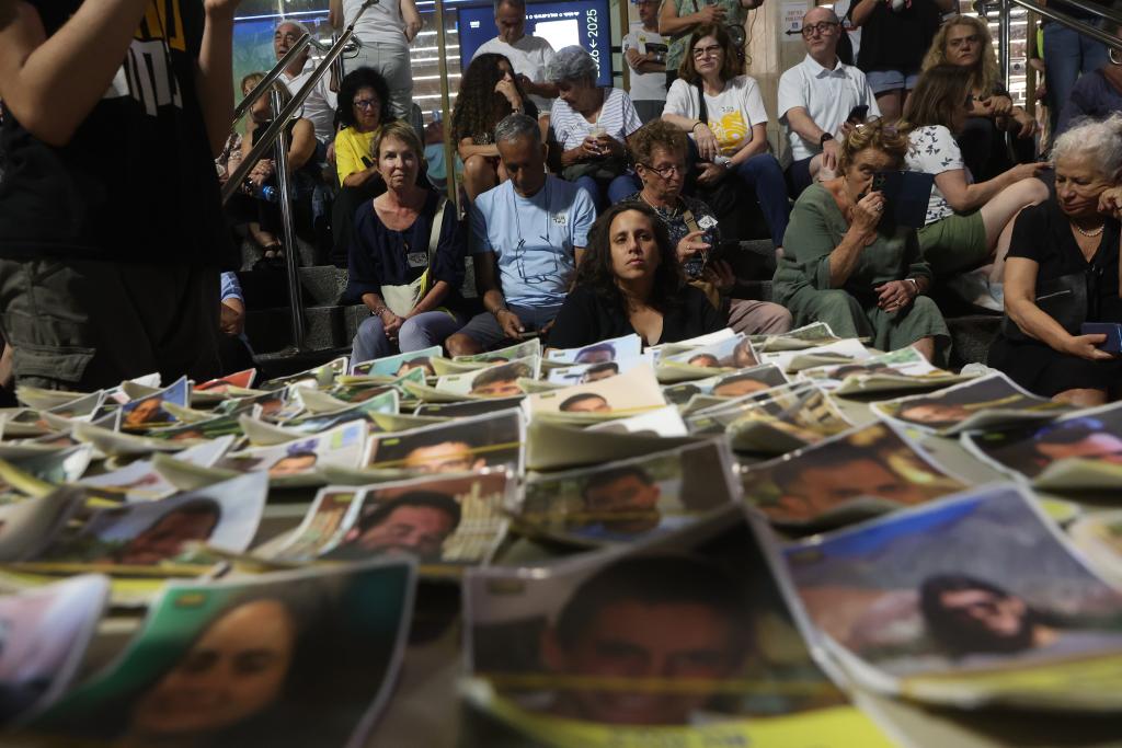10月4日,被扣押人員家屬和支持停戰的人們在以色列特拉維夫舉行游行集會,要求政府迅速在加沙地帶實現停火,讓被扣押人員回家。新華社發(吉爾·科恩·馬根攝)