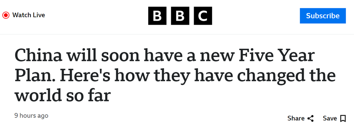 英國廣播公司(BBC)網(wǎng)站報(bào)道稱,中共二十屆四中全會將奠定中國未來五年發(fā)展規(guī)劃的基礎(chǔ),這是世界第二大經(jīng)濟(jì)體在2026年至2030年間將遵循的藍(lán)圖。歷史證明,中國科學(xué)制定和接續(xù)實(shí)施的五年規(guī)劃已經(jīng)深刻重塑全球發(fā)展格局。