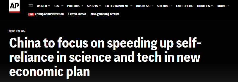 美聯社報道稱,近年來,中國的產業政策成功促進了電動汽車與風電、光伏產業的迅猛發展,目前正將重心延伸至機器人及人工智能領域。報道援引分析人士的話說,此次公報強調科技自立自強水平要實現大幅提高,這反映出中國在應對外部壓力時已具備了更強的韌性。