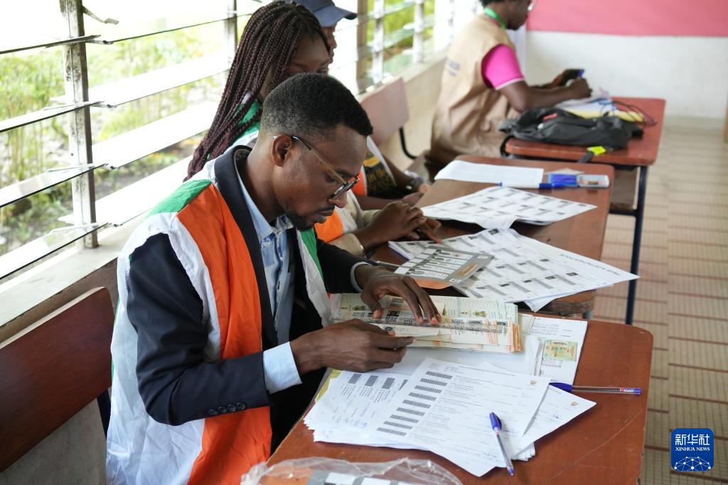 10月25日,工作人員在科特迪瓦經濟首都阿比讓的一處投票站核實選民信息。新華社記者 張健 攝
