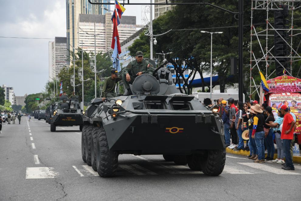 9月23日,在委內瑞拉首都加拉加斯,參加游行的裝甲車輛列隊行進。當天,加拉加斯舉行大規模游行,呼吁保衛委內瑞拉主權與和平,反對美國在加勒比海域的軍事威脅。新華社發(馬科斯·薩爾加多攝)