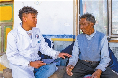 走進(jìn)大門(mén),他一邊和老人寒暄,一邊從包里拿出血壓計(jì)?!斑@兩個(gè)月血壓變化不大,咱們還要繼續(xù)保持健康生活習(xí)慣,不要吃太多油鹽?!绷客暄獕?,索朗丹增細(xì)細(xì)叮囑。