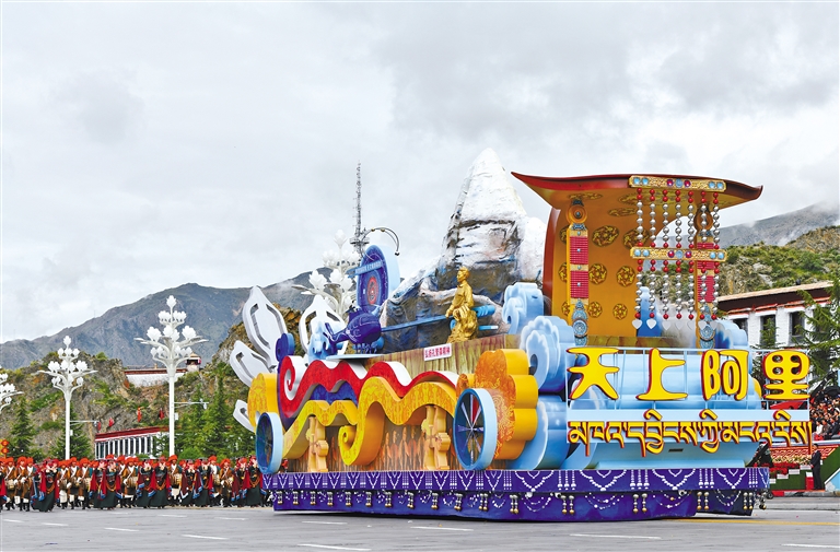 “天上阿里”彩車。記者 旦增蘭澤 攝