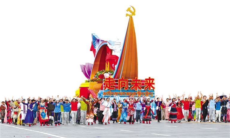 九車連珠,濃縮60年滄桑巨變;萬眾歡騰,抒發對黨和國家的感恩之情。