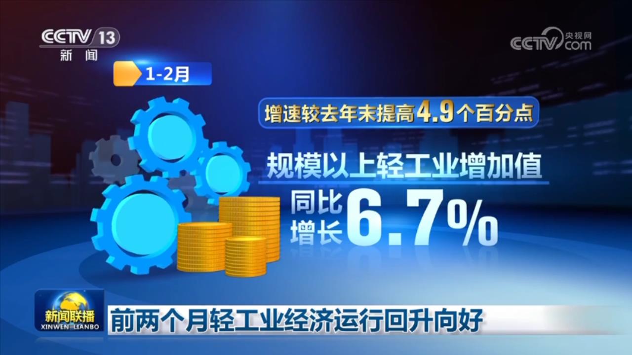 輕工業生產呈現出較快增長態勢。前兩個月,規模以上輕工業增加值同比增長6.7%,增速較去年末提高4.9個百分點。其中,造紙、塑料制品、家用電器、家具等制造業增加值增速超過10%。