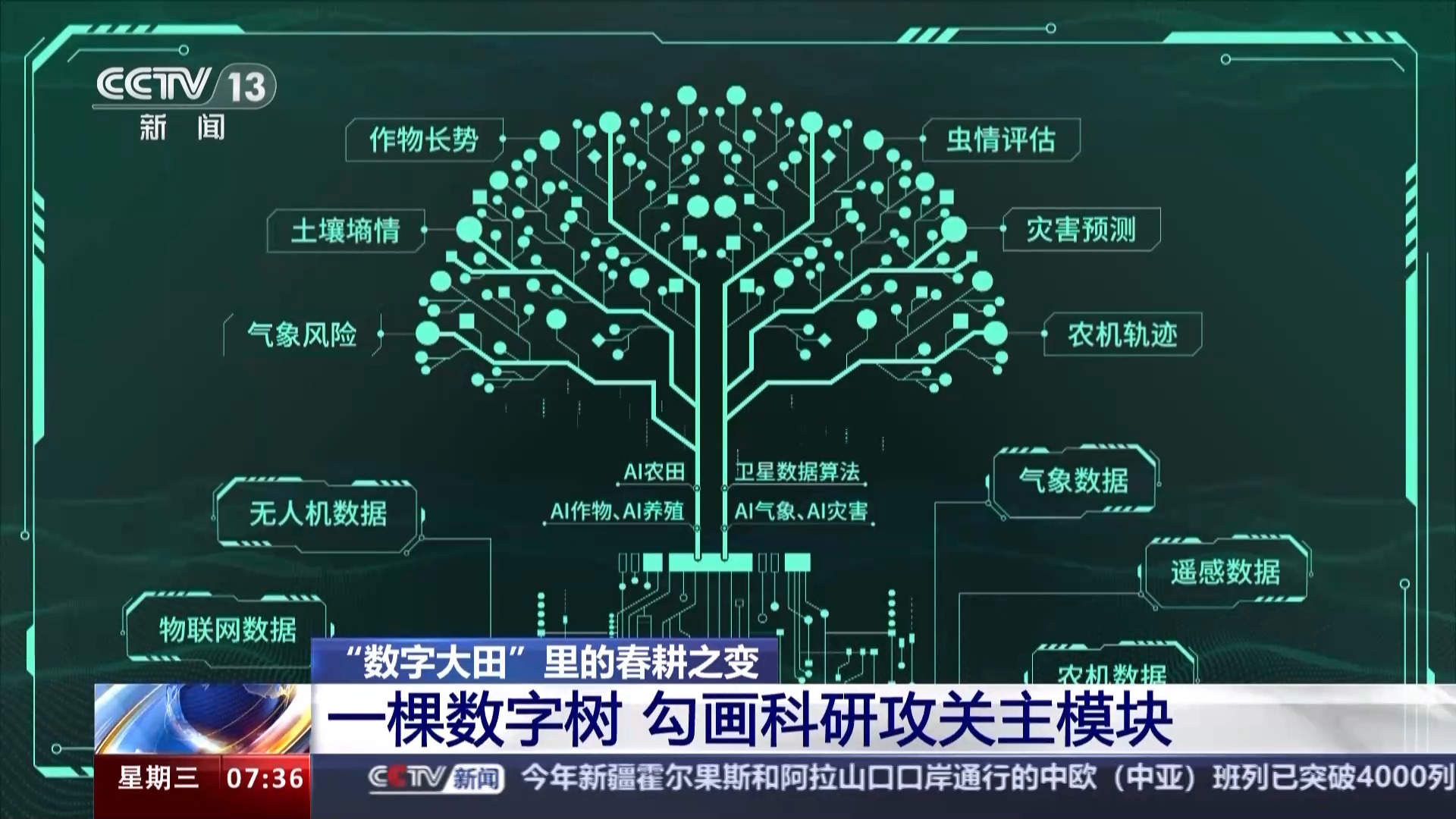 從眼前這個樹狀協(xié)作圖基本可以看出團(tuán)隊的架構(gòu):樹根是多維大數(shù)據(jù),由遙感衛(wèi)星、氣象、物聯(lián)網(wǎng)等收集從天到地的農(nóng)業(yè)數(shù)據(jù),遙感團(tuán)隊、氣象團(tuán)隊負(fù)責(zé)數(shù)據(jù)收集、預(yù)處理;樹干是骨架,由遙感、氣象以及人工智能人員組成團(tuán)隊建模,對基座數(shù)據(jù)進(jìn)行分析;樹冠是數(shù)據(jù)成果,長出田塊位置、作物長勢、災(zāi)害預(yù)警等信息。最后通過計算機(jī)工程師的搭建,一塊塊數(shù)字農(nóng)田就出現(xiàn)在屏幕里。