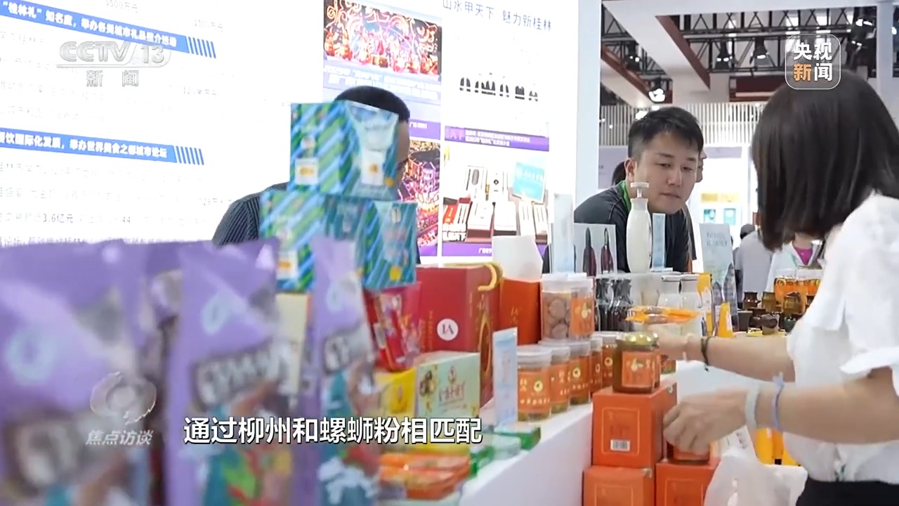 廣西壯族自治區(qū)商務廳工作人員 李春穎:往年我們都是桂茶、桂酒、桂藝,我們這一次想增加城市烙印,就選擇了六個區(qū)域消費培育試點城市,讓城市跟物品相掛鉤。我們通過柳州和螺螄粉相匹配,桂林和桂林有名的文創(chuàng)相匹配。展會可能是一個星期、一個時間段,通過展會引導消費者來到我們的城市,感受消費,全年消費。