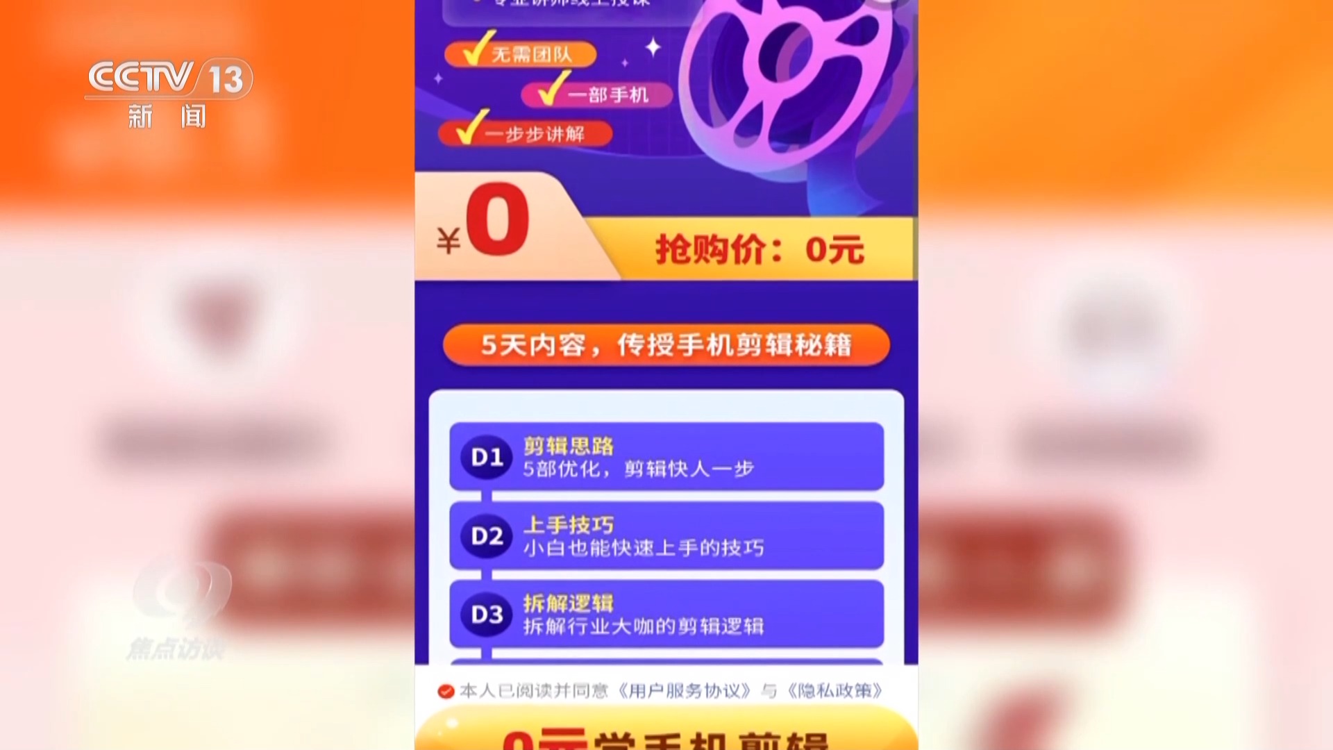 近年來,線上學習的普及程度越來越高,行業不斷發展壯大的同時,也衍生出一些亂象。部分所謂的培訓機構利用消費者急于學技、創業的心理制造焦慮,打著“0元學”的旗號,聲稱可以短期速成、財富增值。這種培訓靠譜嗎?真的可以不用花錢就能學到本事,然后就能掙錢嗎?所謂的“0元學”里暗藏著哪些套路?