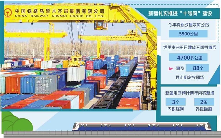 內供外聯的電力網是新疆著眼于積極擴大有效投資、構建現代化基礎設施體系,今年確定密織的“十張網”之一,其他“九張網”為東聯西出的鐵路網、通行便利的公路網、干支聯通的航空網、調控有力的水利網、覆蓋廣泛的天然氣管網、高效暢通的商貿物流網、綠色低碳高效的算力網、集約便捷的地下管網、聯通歐亞的跨境網。