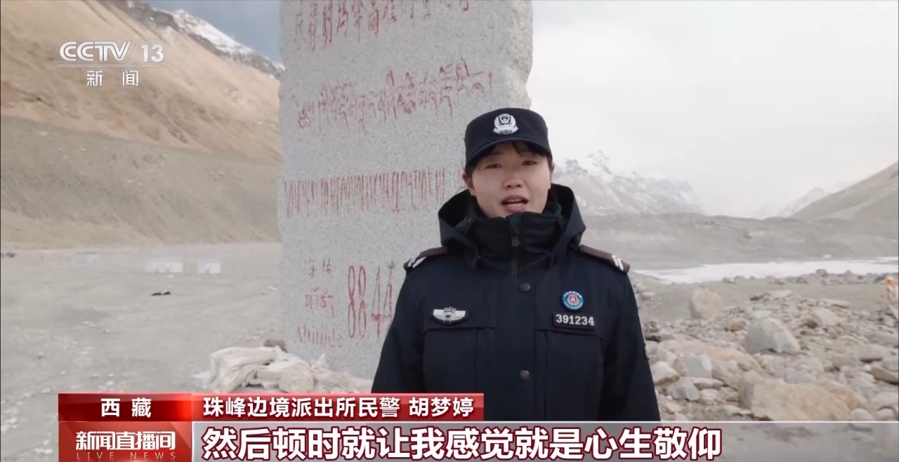 珠峰邊境派出所民警 胡夢婷:一次偶然的機會,我看到珠峰邊境派出所的民警在珠穆朗瑪峰腳下巡邏的報道,頓時就讓我心生敬仰,也心馳向往,我退伍之后報名參加了國考,并且主動申請到珠峰邊境派出所。