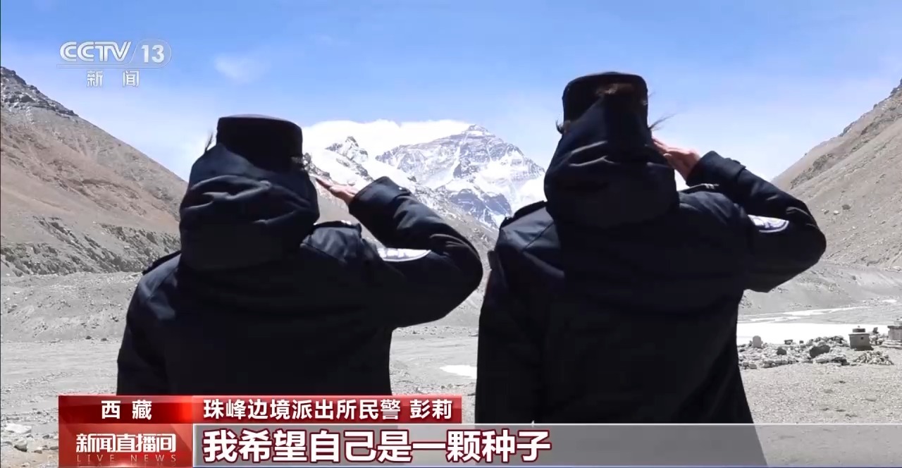 珠峰邊境派出所民警 彭莉:駐守在這里我覺得不僅可以守衛世界最高峰,領略世界之巔的風采,而且我覺得更多的是一種責任和擔當,我希望自己是一顆種子,可以在這里生根發芽,奮力生長。