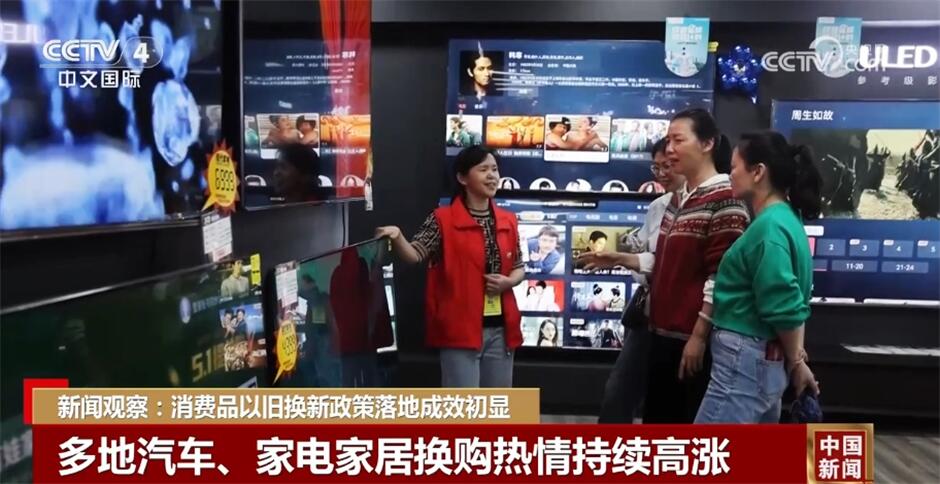 據了解,在政府、企業、商家等多方補貼優惠政策的拉動下,多地汽車、家電家居換購熱情持續高漲,綠色化、智能化、節能化家電備受消費者青睞,線下線上家電以舊換新訂單量和金額大幅增加,政策落地成效初顯。